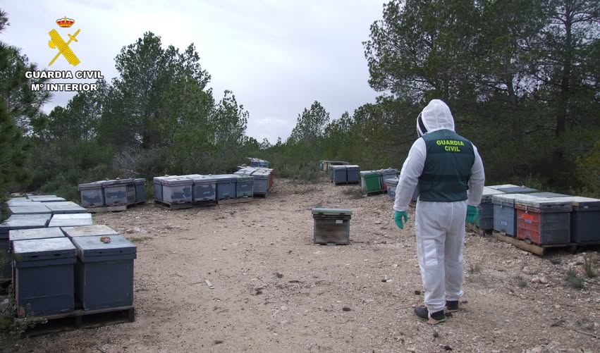 Efectivos de la Guardia Civil de Aýna, dentro de su compromiso para la protección del medio ambiente y la apicultura, han detenido a un vecino de la localidad albacetense de Paterna del Madera, de 56 años de edad, como presunto autor del hurto de quince colmenas apícolas, sitas en un paraje del término municipal ayniego.
