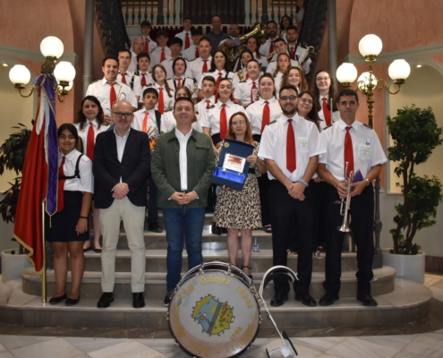 Con orgullo y emoción, como cenizateño y como músico de esta agrupación de la que fue integrante, Cabañero ha hecho entrega a su presidenta, Celsi Vergara, y a su director, Álvaro García, de una placa en forma de homenaje y reconocimiento a la trayectoria, como se ha convertido en tradición con cada formación que ha participado en esta cita, al tiempo que les ha realizado una ‘visita guiada’ por las dependencias del propio Palacio Provincial.