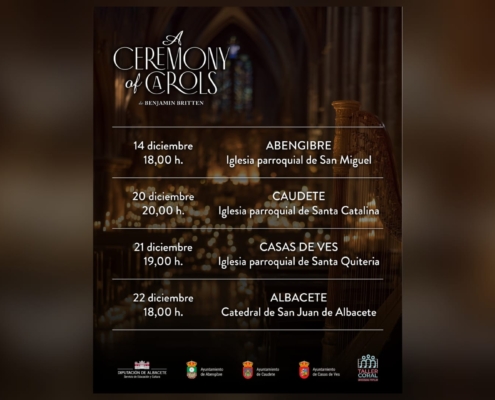 Tras el éxito de proyectos como ‘Un coro en… Alcaraz’ (2022), El Bonillo (2023) y el Encuentro Coral Infantil y Juvenil de la Navidad de 2024, la Diputación apuesta por presentar en distintos municipios una de las obras más emblemáticas del repertorio coral navideño: A Ceremony of Carols de Benjamin Britten.